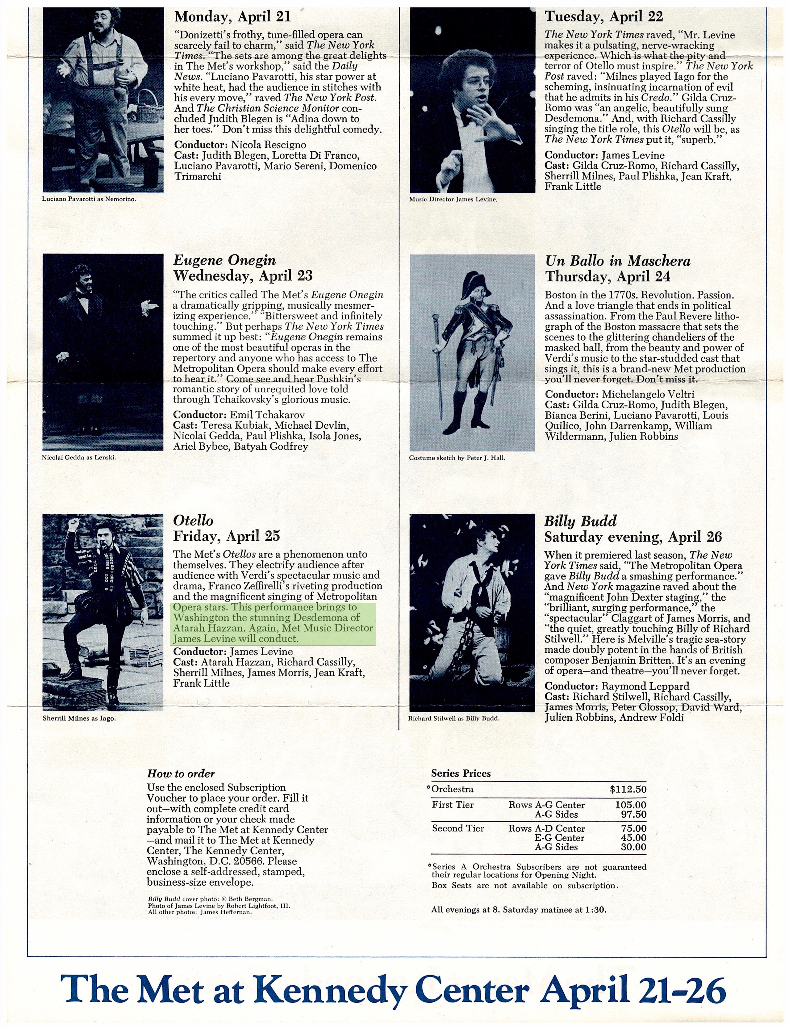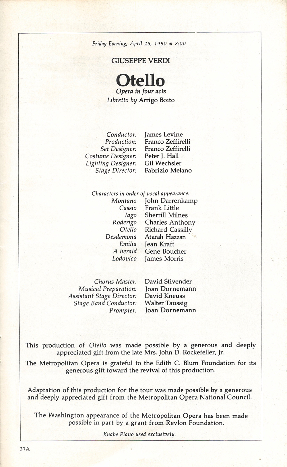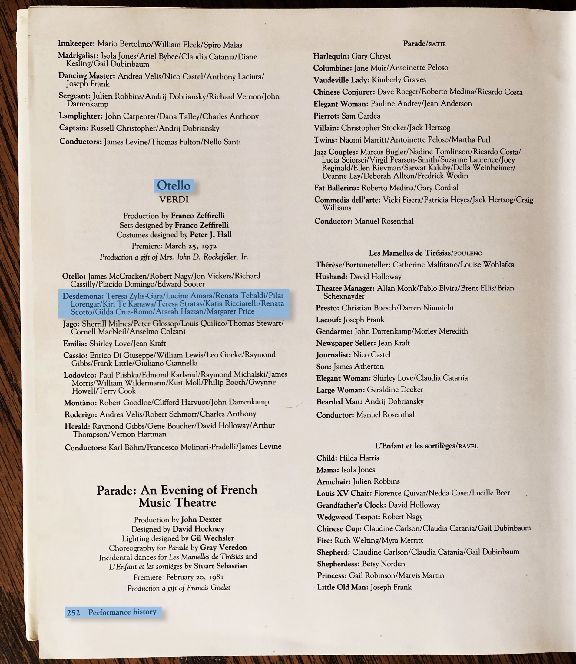 Otello: MET-Zeffirelli production. Performances 1972 - 1985 casts - sopranos